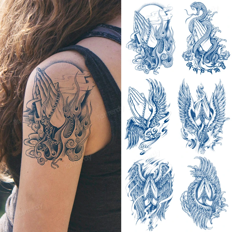Fake Tattoo Juice Ink Long Lasting Arm Sleeve Tattoo Sticker Waterproof Blue Put Hands Together Angel Wings Tattoo Pattern Decal Aliexpress
