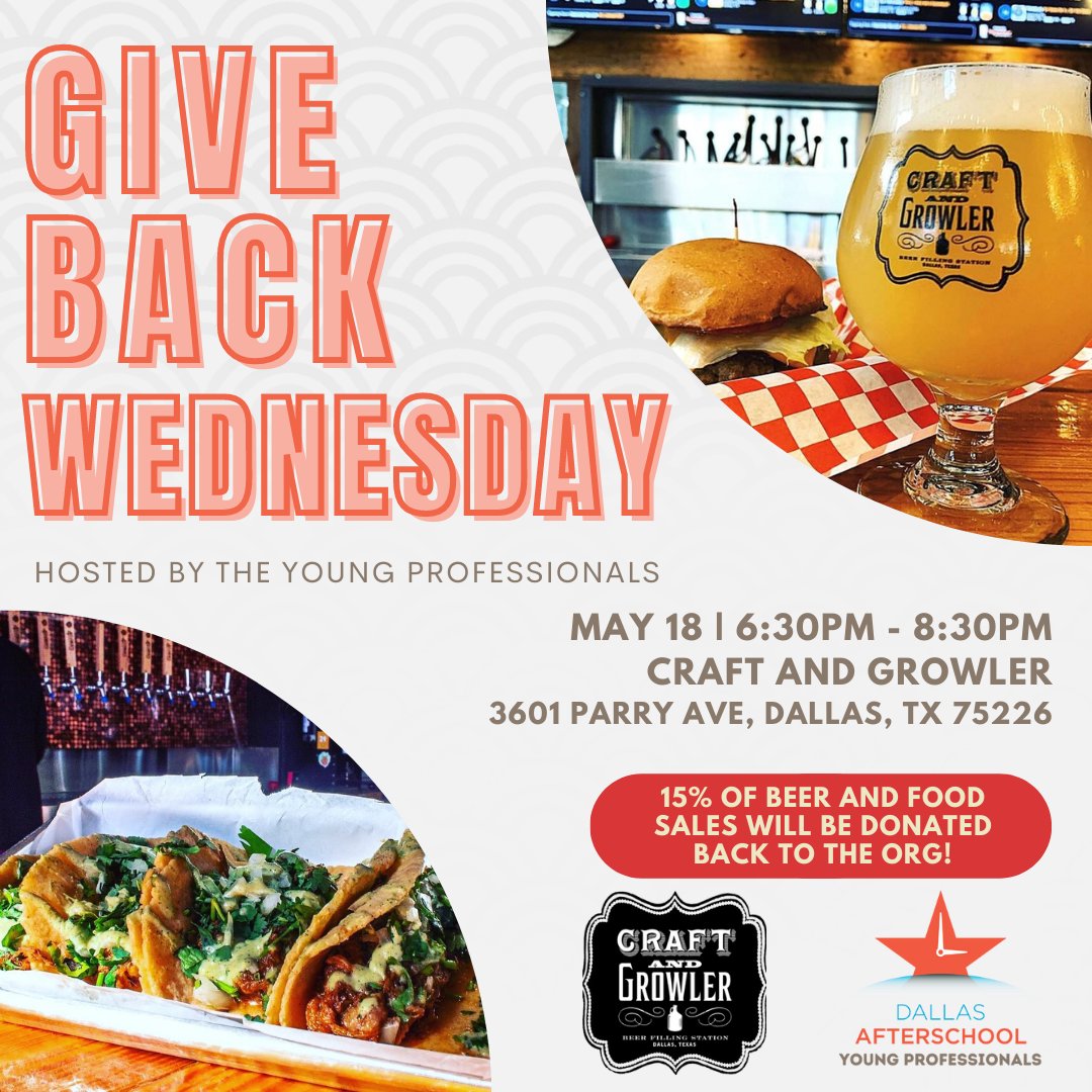 Dallas Afterschool On Twitter Join Us For A Giveback Wednesday Hosted By Our Young Professionals On May 18th We Will Be At Craft And Growler Where 15 Of All Beer And Roodie S
